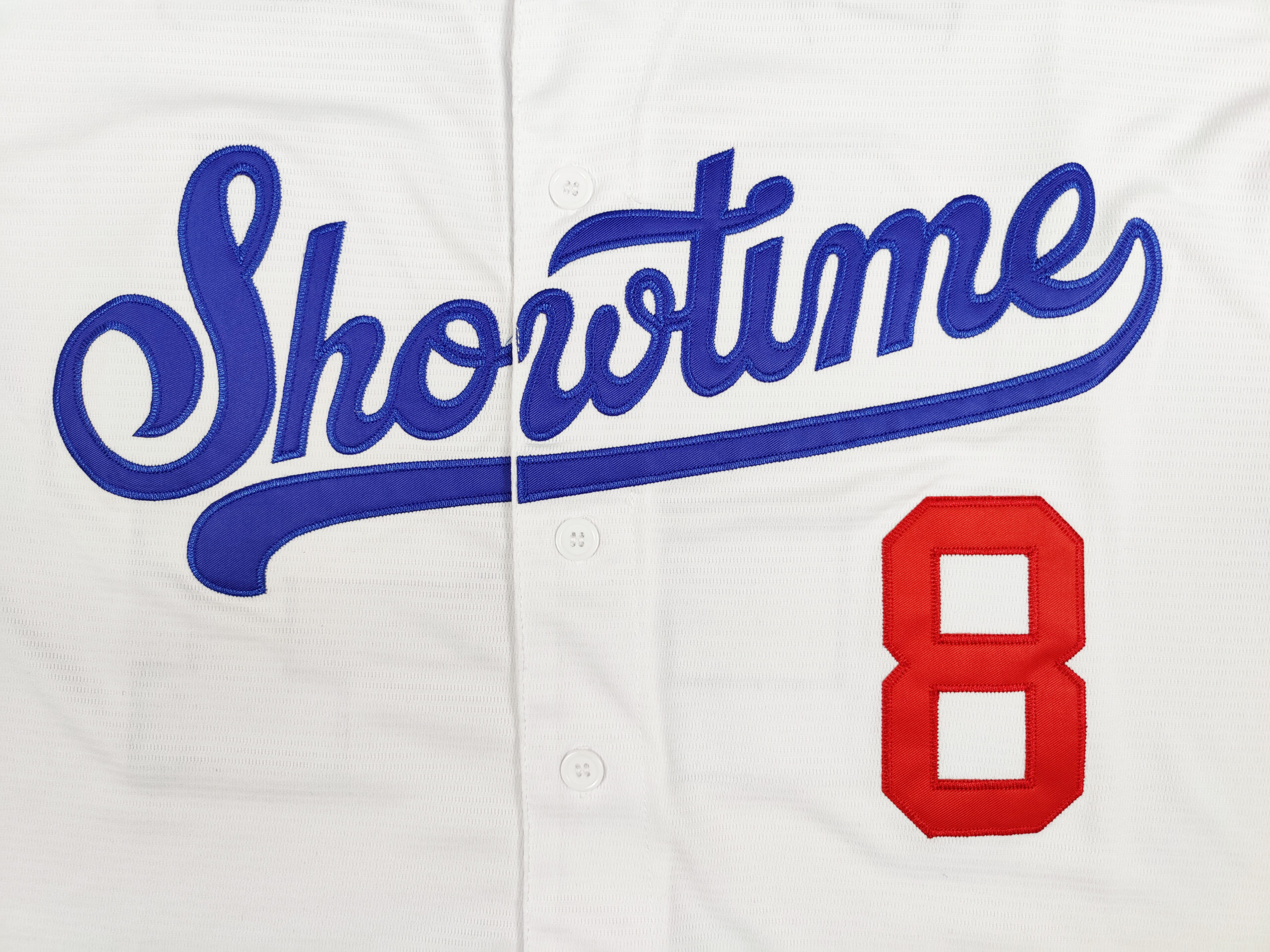 Combine your love of sports, streetwear and nostalgia by copping the Showtime 8 24 Legend white baseball jersey. It is made from 100% recycled polyester fibres, this jersey design has an easy, relaxed fit that looks great on anybody. Don’t sleep on this unique baseball jersey, Available now at Legendshop while stock lasts!
